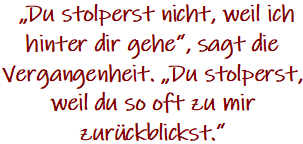 Du stolperst nicht, weil ich hinter dir gehe“, sagt die Vergangenheit. „Du stolperst, weil du so oft zu mir zurückblickst.